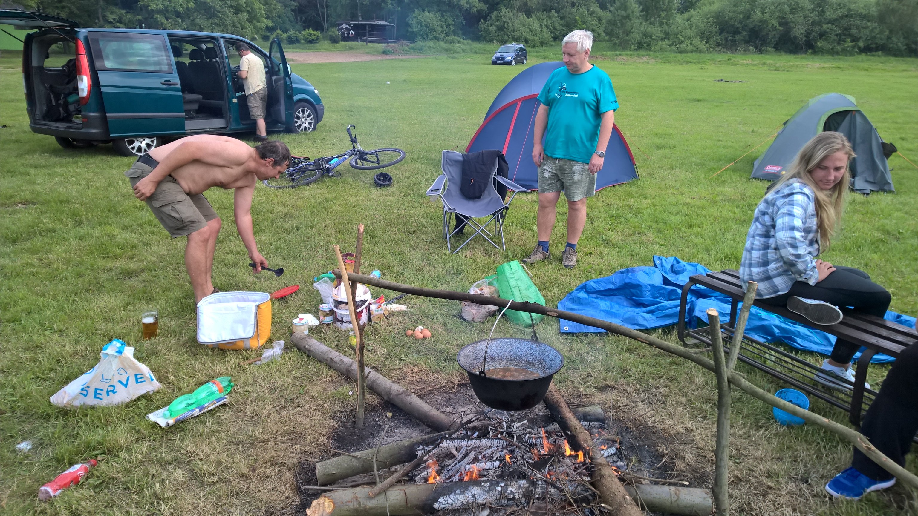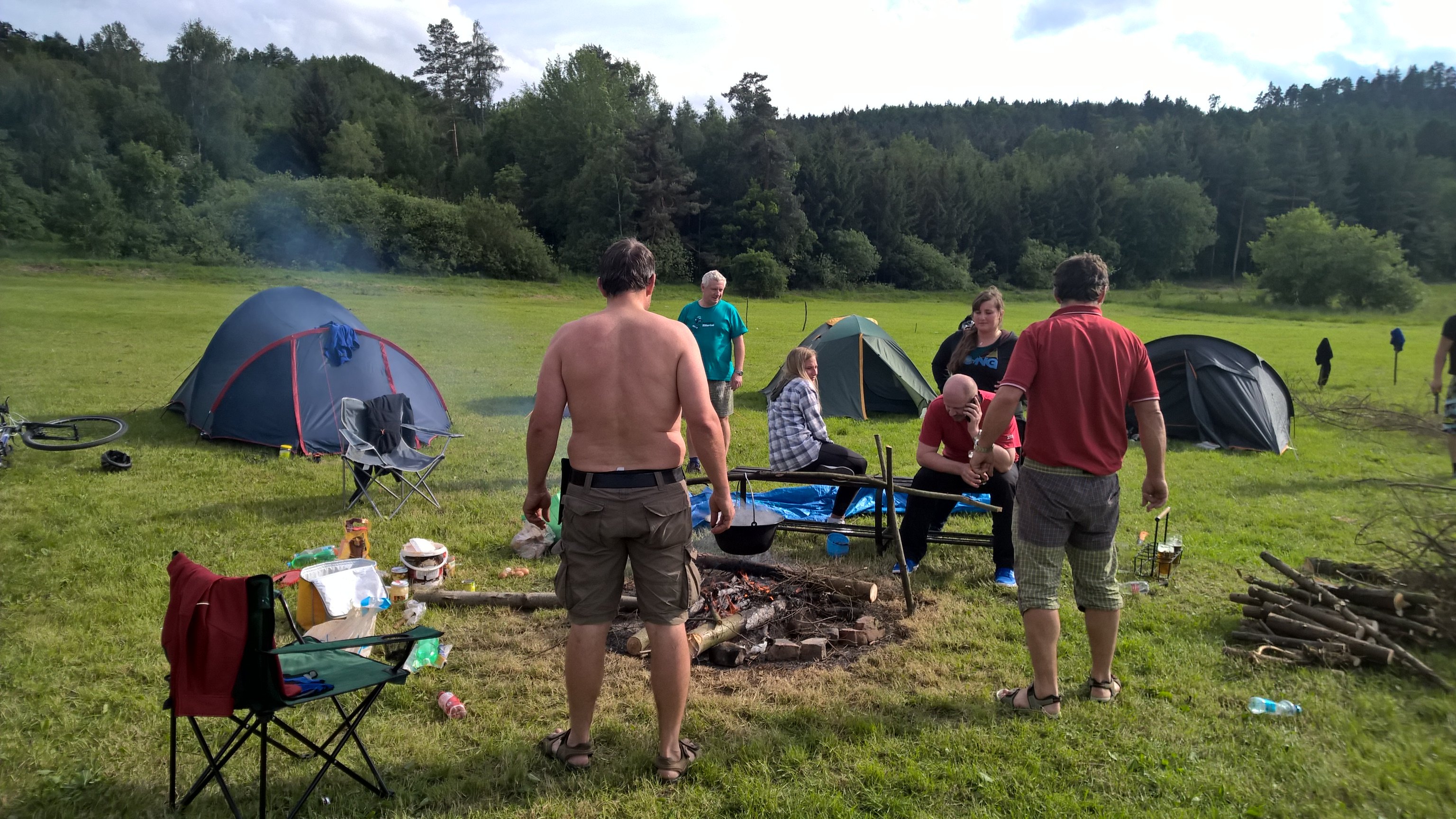 už je to zase tady - jedeme na prodloužený víkend s dětmi pod stan. Jsou zváni všichni naši kamarádi a povinně se zúčastní Maršál. Odjezd hlavní skupiny je naplánován na čtvrtek z nádraží ČD Liberec. Sraz je v 16.00 hod v hale bez žen nad 18 let. Dcery nad 18 let se mohou v letošním roce zúčastnit bez povolení. Vlak odjíždí v 16.31. Příjezd do Jinolic je v 18.19 hod a od 19:00 nás čekají kamarádi ve stánku. Kdo je ve čtvrtek přetížený nebo má nějaké povinnosti, tak přijede v pátek - 2. skupina jede ve stejný čas. POZOR - všichni jedou pouze s plátěnými stany !!!! Návrat je plánován na neděli odpoledne dle nálady a počasí. Je připraven krásný zábavný a sportovní program pro děti i tatínky. Počasí je objednané, snad bude letos lepší než minule !!!