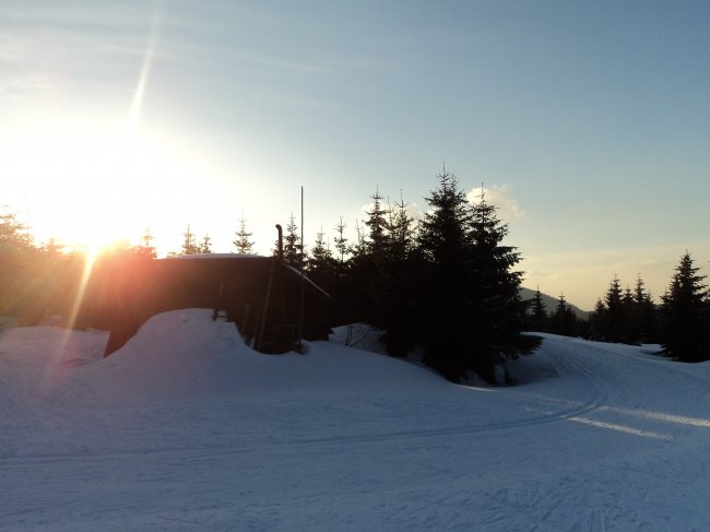 9.3.2012 - Přejezd Jizerských hor z Maliníku přes Závory,Oliveckou horu,Bílou kuchyni,Hřebínek,Knajpu a Snědavu na Jizerku. Ubytování,relaxace,večerní schůze.